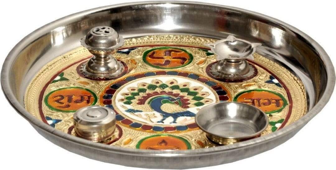 The Meenakari Multi-Colour Stainless Steel Plate is a gorgeous combination of contemporary functiona...
